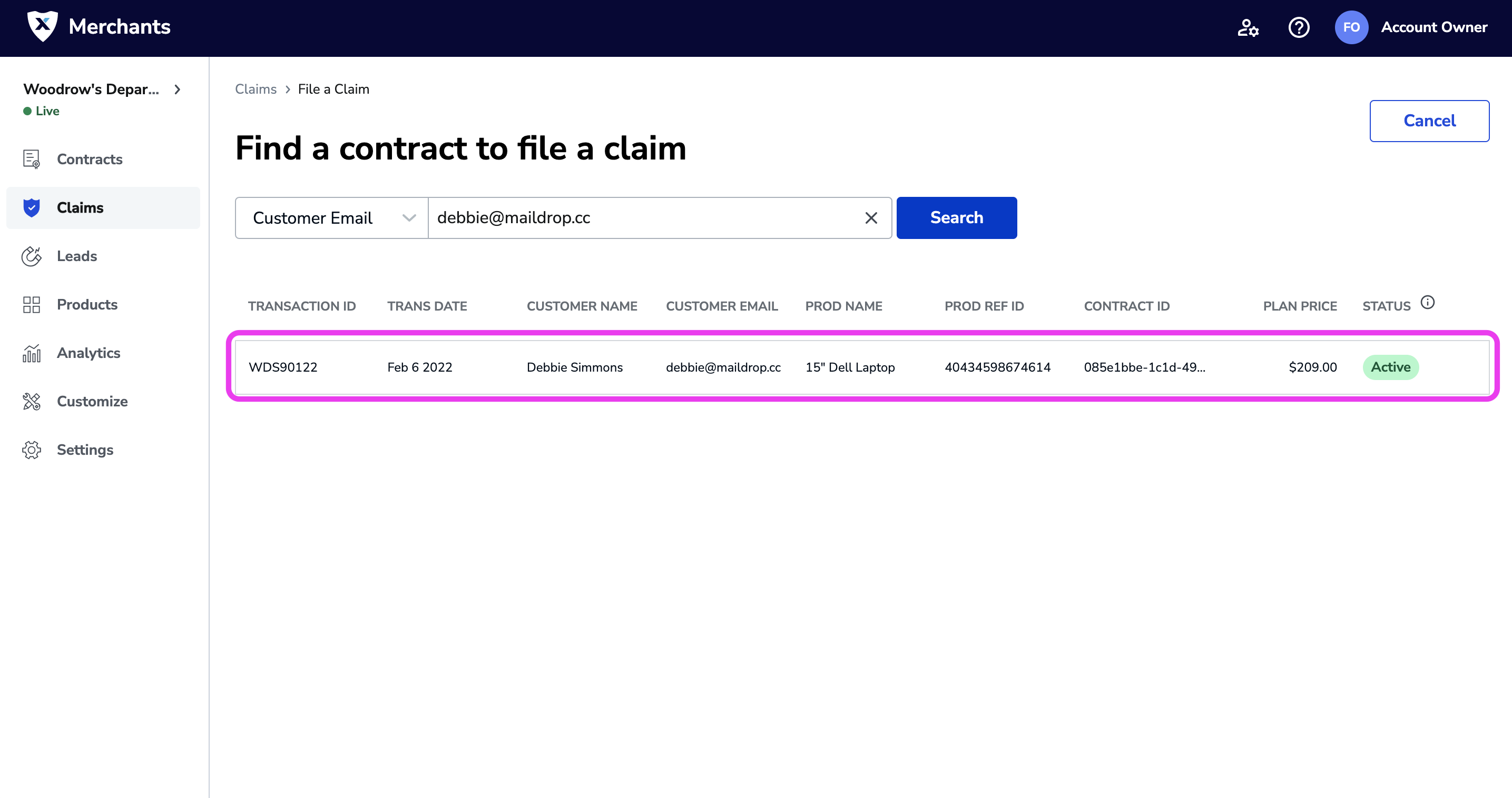 You can use the Merchant Portal to search, filter, and sort on all the claims filed by your customers to date.