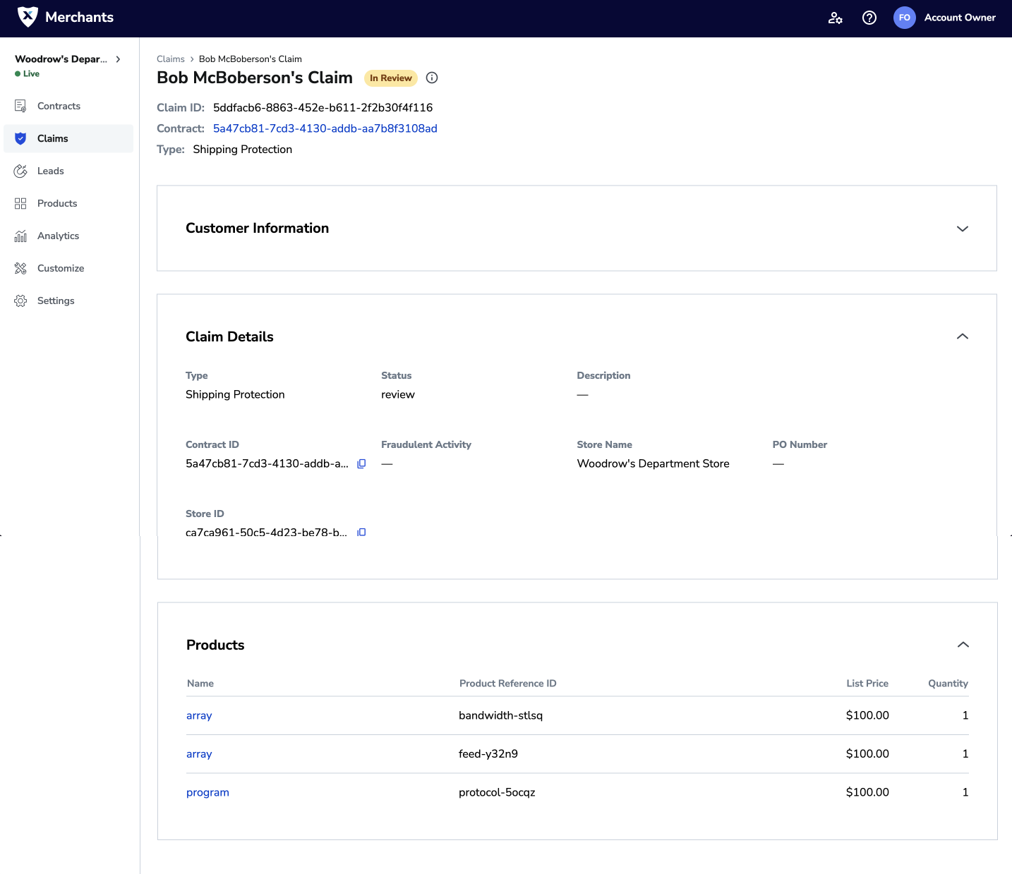 You can use the Merchant Portal to file a claim against a product and/or shipping protection contract on behalf of your customer.