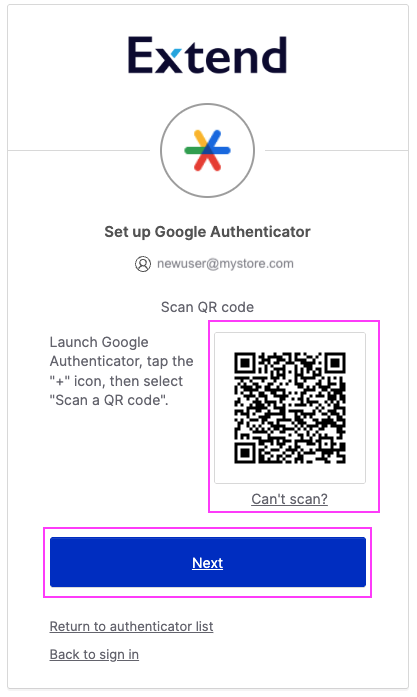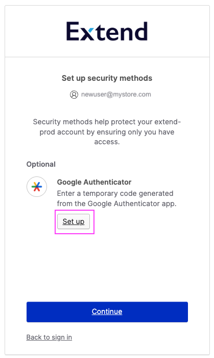When signing into the Extend Merchant Portal for the first time, a user will need to set up their new password and 2-factor authentication.